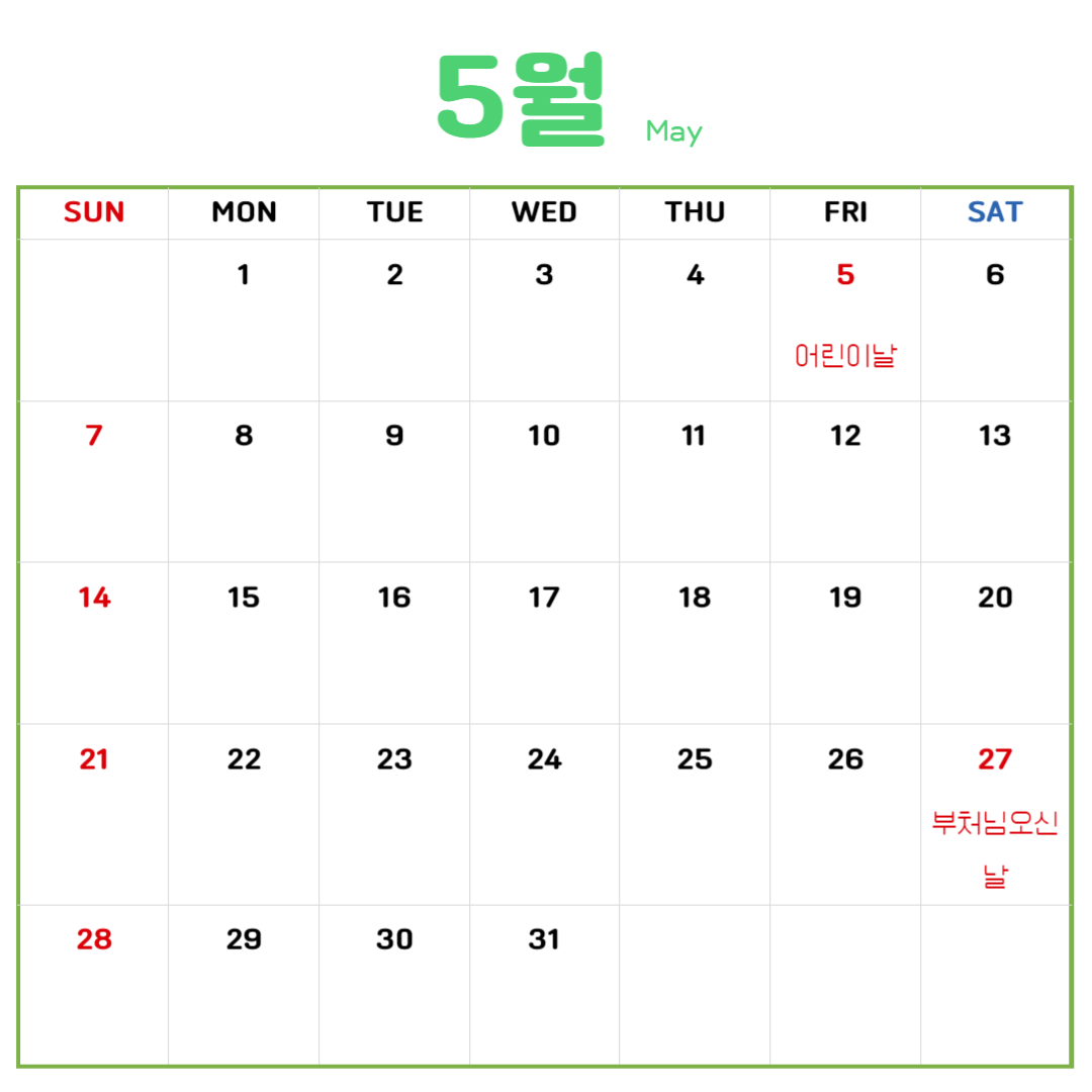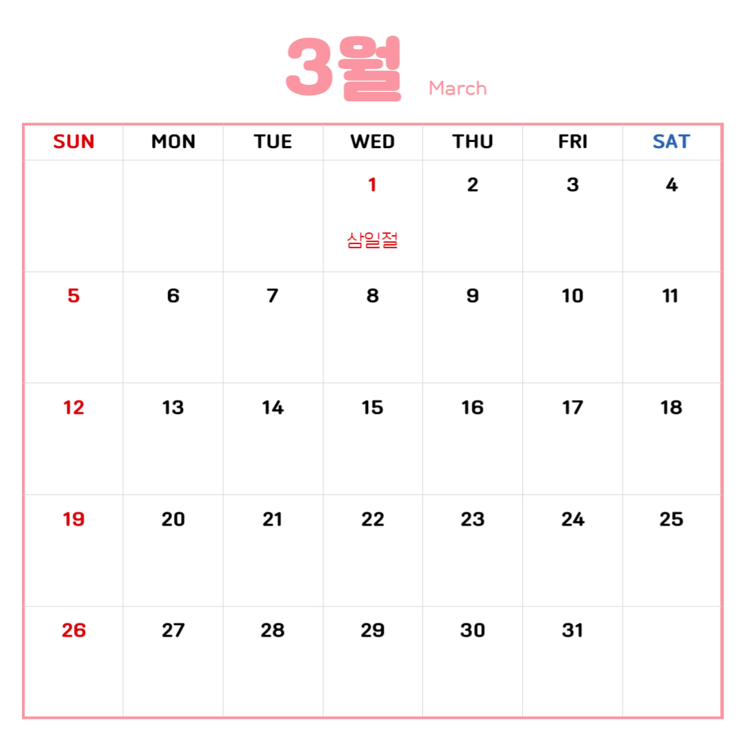 ※ 국경일 : 3.1절, 제헌절, 광복절, 개천절, 한글날 (제헌절은 공휴일에서 제외)