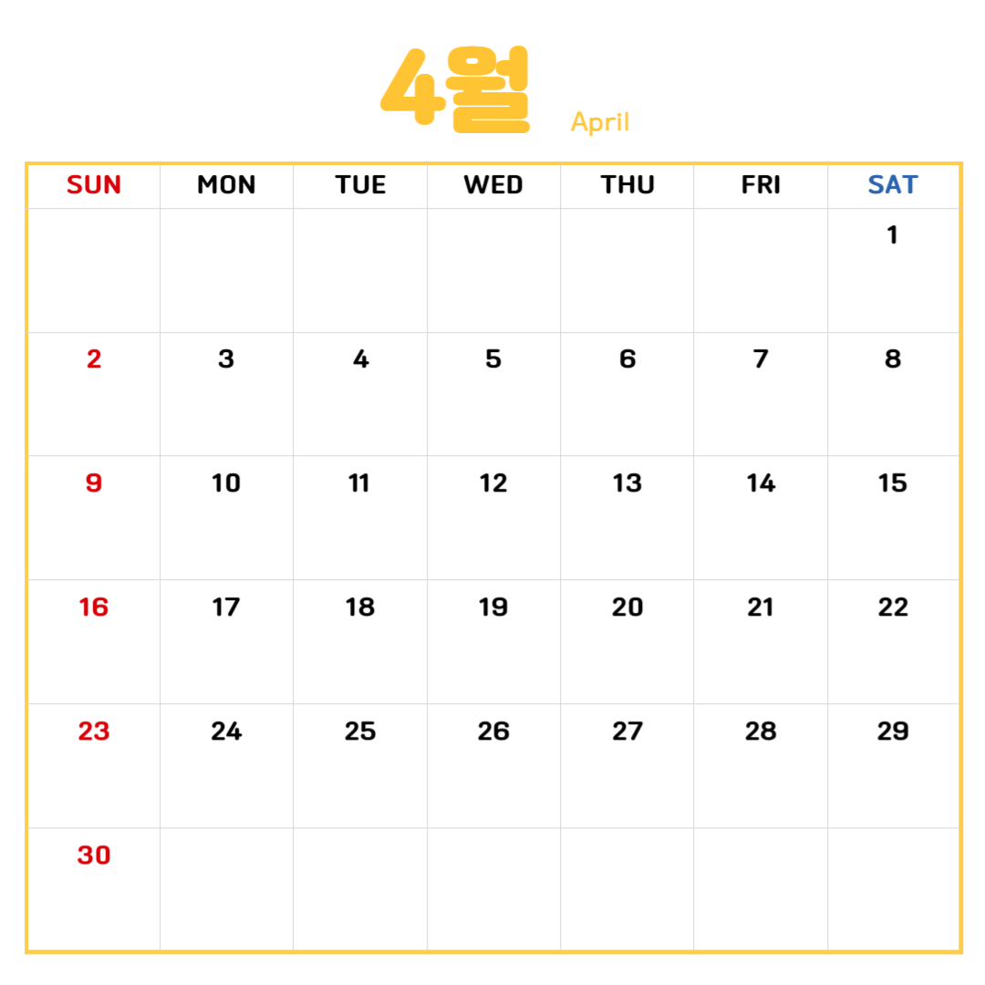 4월 달력 및 공휴일 안타깝지만 공휴일이 없네요.. 하지만 기억해둬야 하는 날은 있죠?