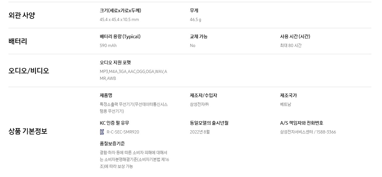 | 네트워크 | 블루투스 5.2, WIFI 2.4GHz & 5GHz / GPS / NFC / LTE(별도 모델) | |